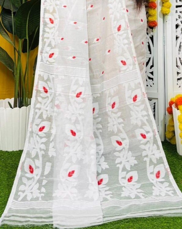 Loto Pata Soft White Jamdani Sari