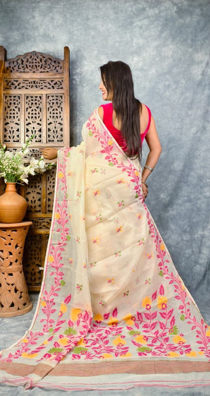Be the first to review “Cream Soft Bonolota Jamdani Sari” Cancel reply