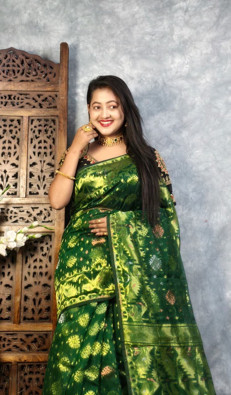 Dark Green Soft Joriwork Jamdani Saree