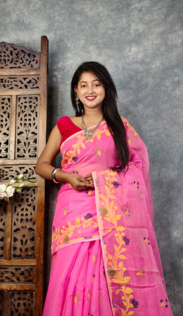 Be the first to review “Dark Pink Soft Bonolota Jamdani Sari” Cancel reply