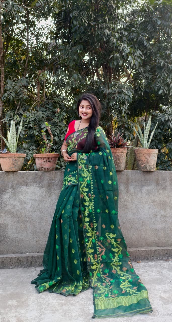 Be the first to review “Dark Teal Soft Buti Korat Jamdani Sari With Blouse Piece” Cancel reply