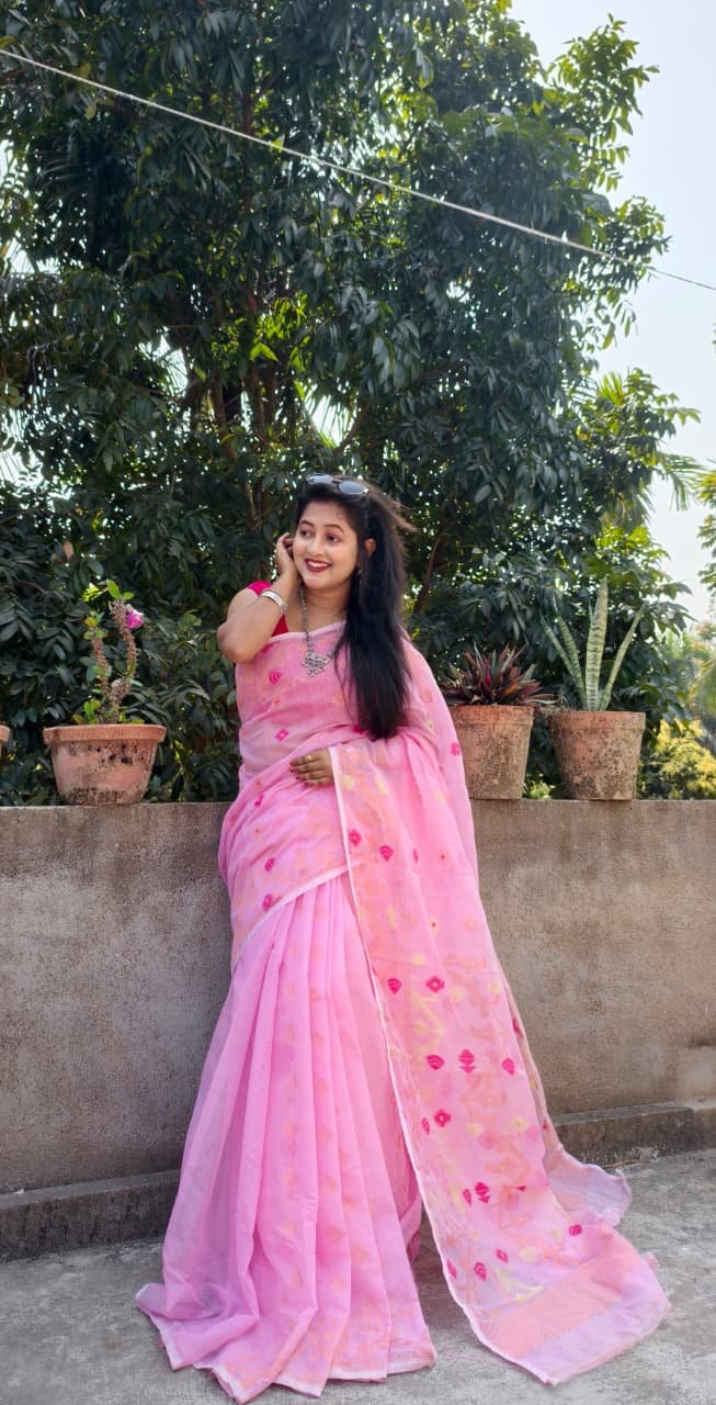 Dull Pink Soft Buti Korat Jamdani Sari With Blouse Piece