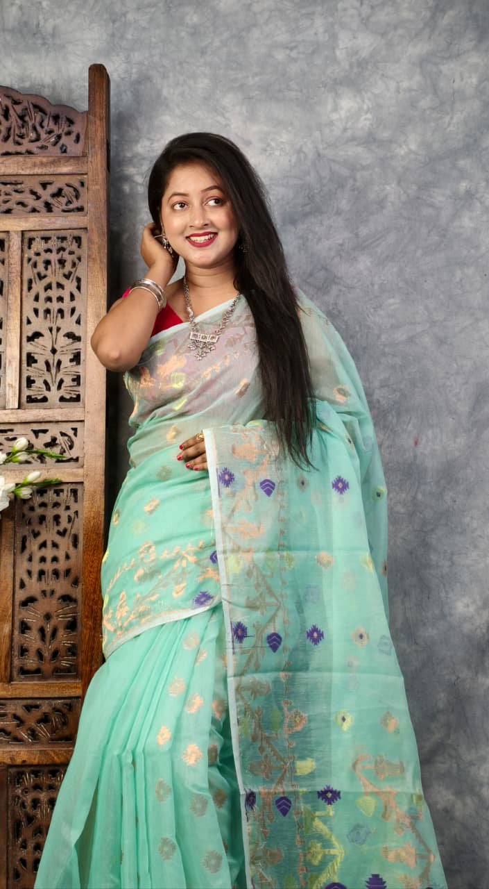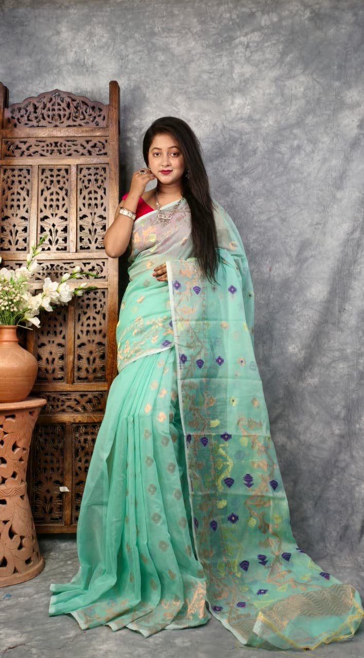 Be the first to review “Dusty Teal Soft Buti Korat Jamdani Sari With Blouse Piece” Cancel reply