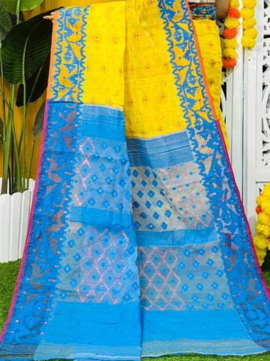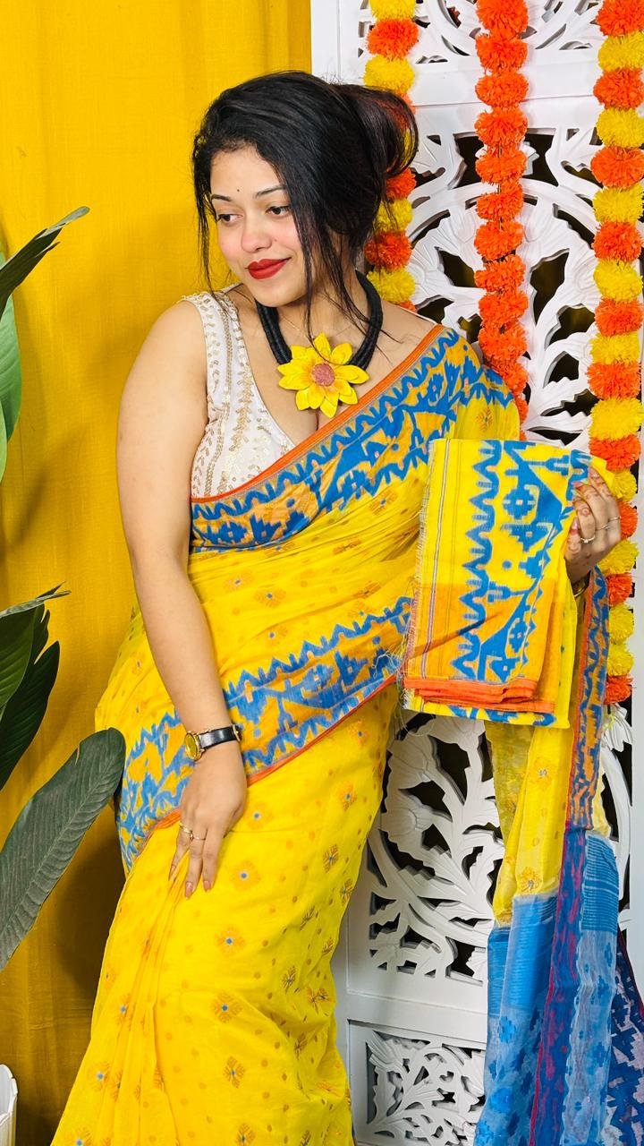 Golden Yellow Soft Dhakai Jamdani Saree