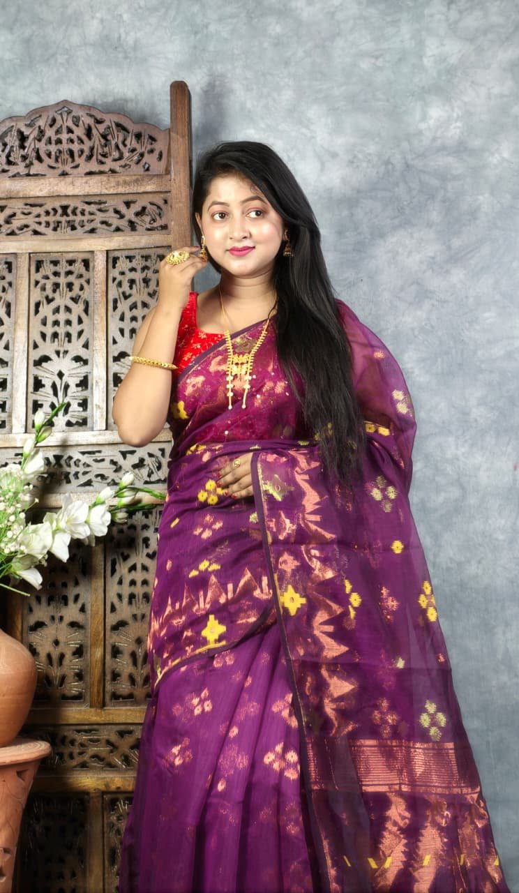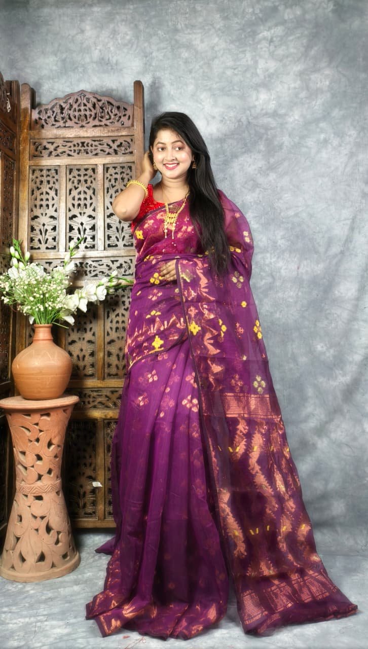 Be the first to review “Grape Purple Soft Jori Buti Dhakai Jamdani Sari” Cancel reply