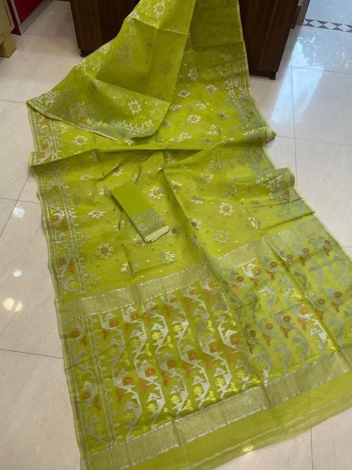 Olive Green Soft Joriwork Jamdani Sari With Blouse Piece