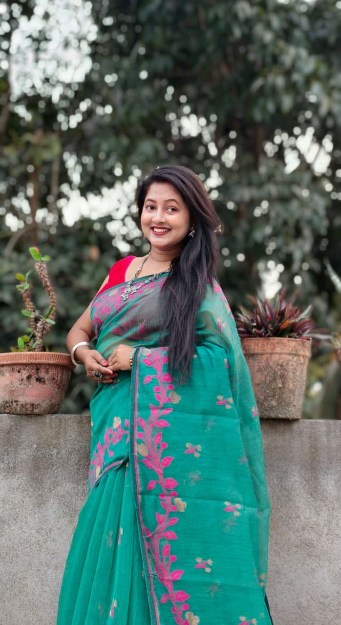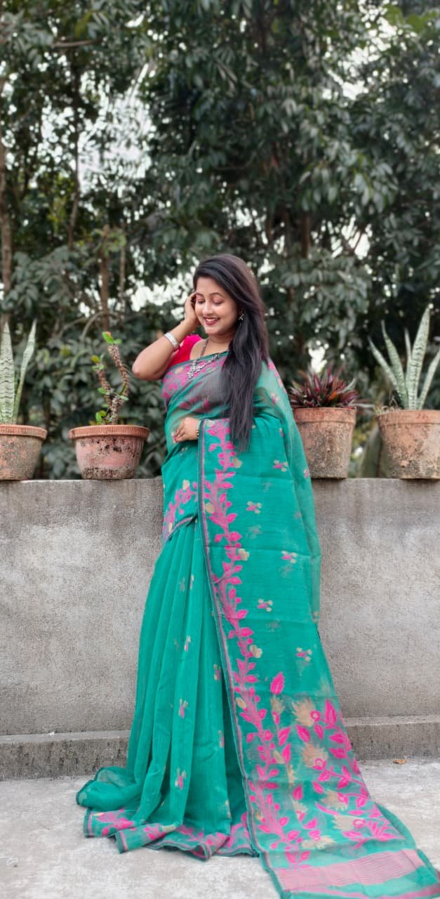 Persian Green Soft Bonolota Jamdani Sari