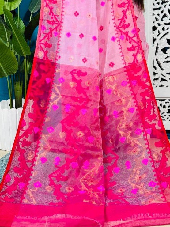 Loto Pata Soft Watermelon Jamdani Sari