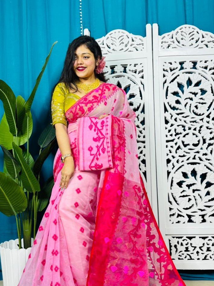 Be the first to review “Persian Pink Korat Buti Soft Jamdani Sari With Blouse Piece” Cancel reply