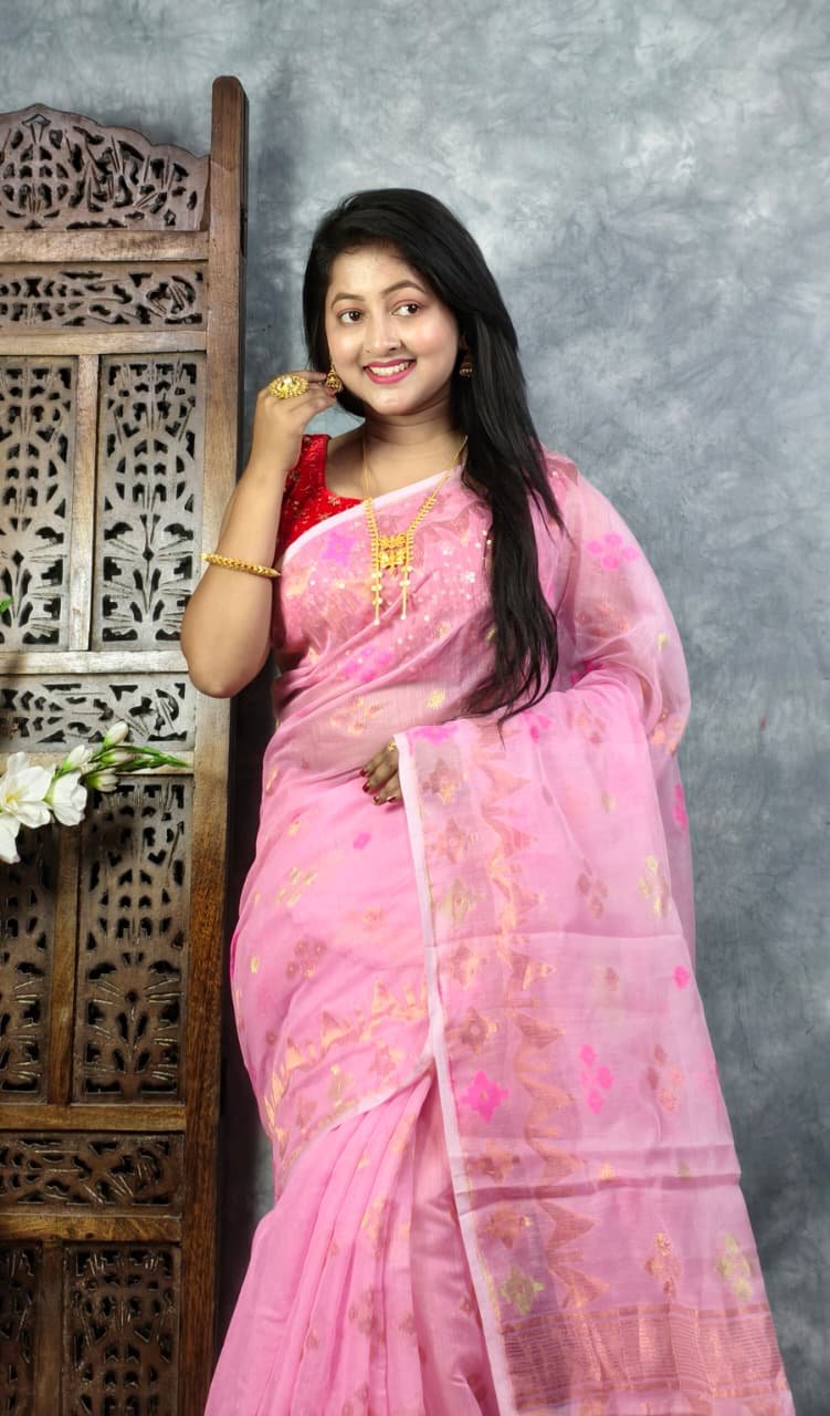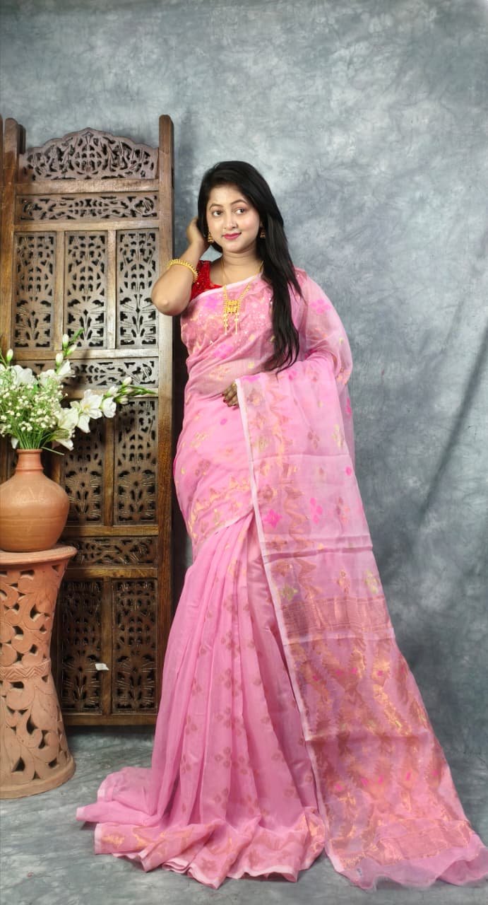 Turkish Rose Soft Jori Buti Dhakai Jamdani Sari