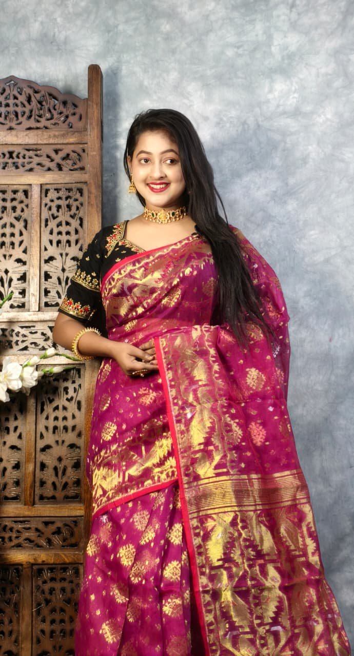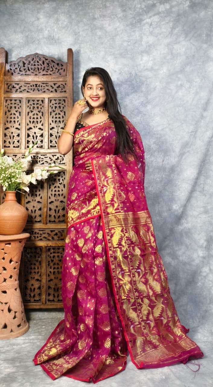 Purple Red Soft Joriwork Jamdani Saree