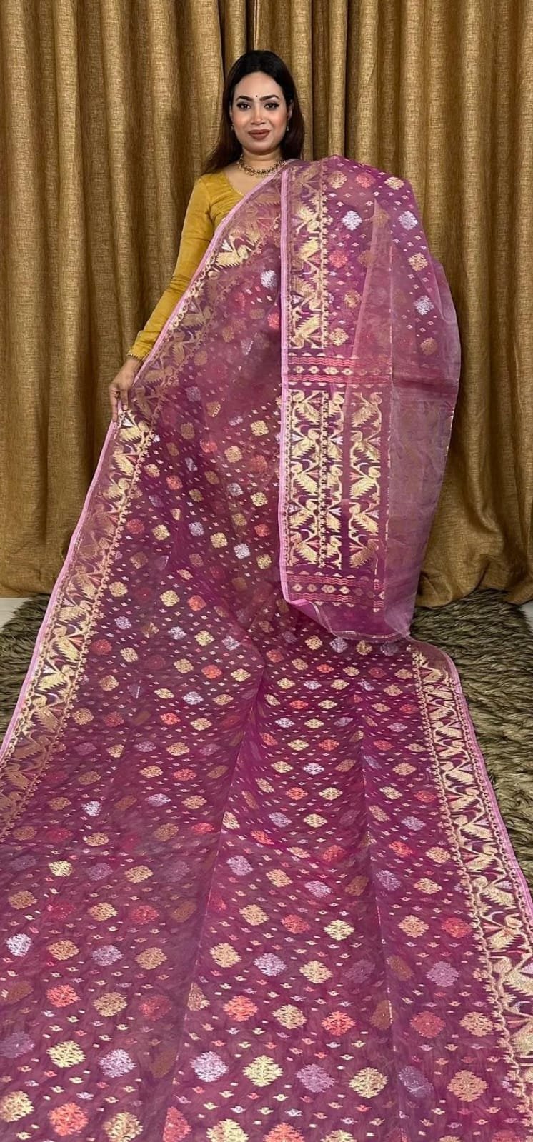 Pink Rose Korat Buti Soft Jamdani Sari With Blouse Piece