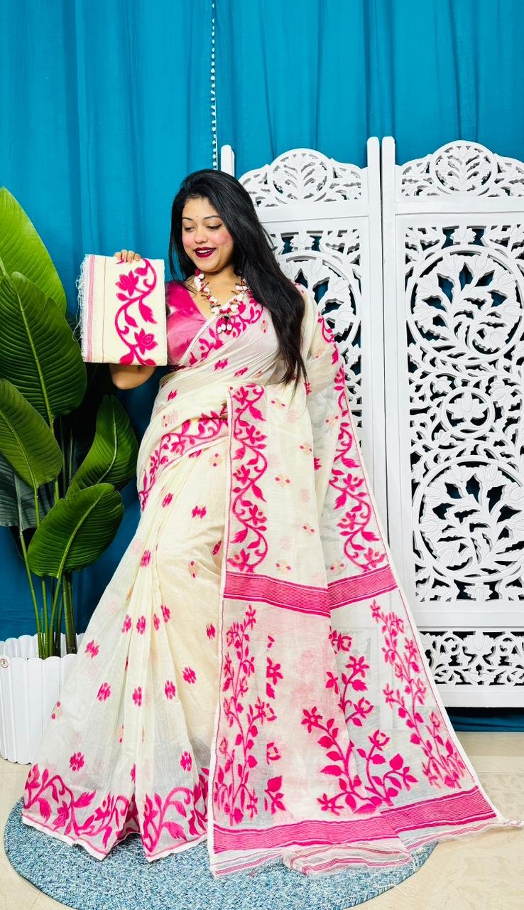 White Rock Soft Lota Jamdani Sari With Blouse Piece