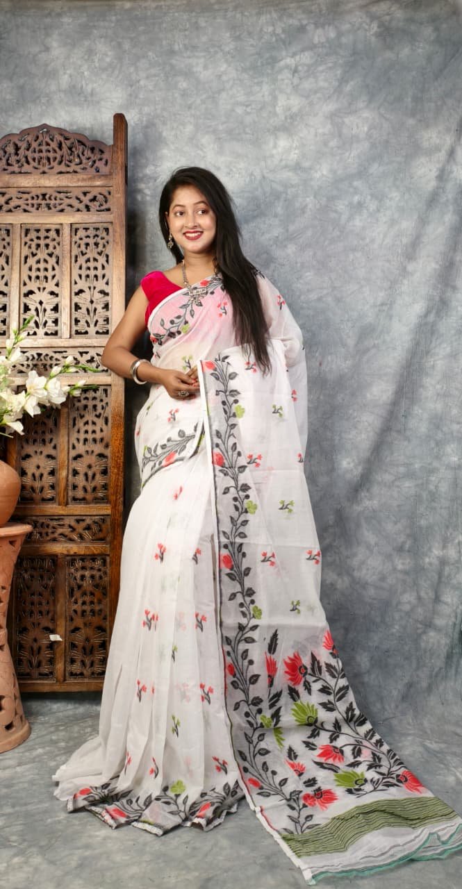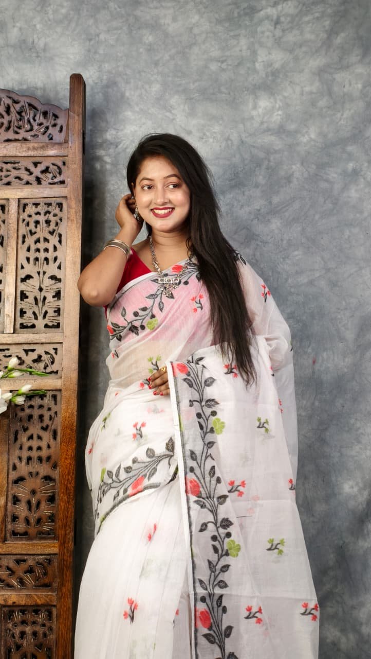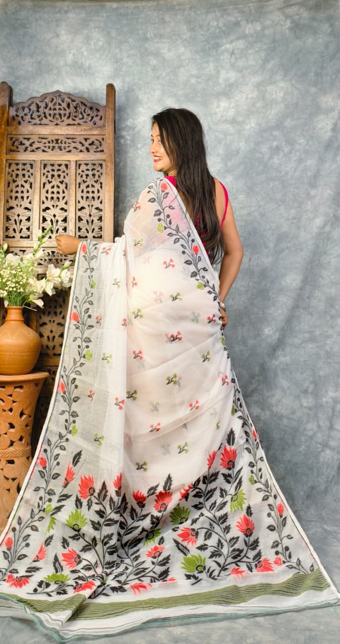 Be the first to review “White Soft Bonolota Jamdani Sari”
