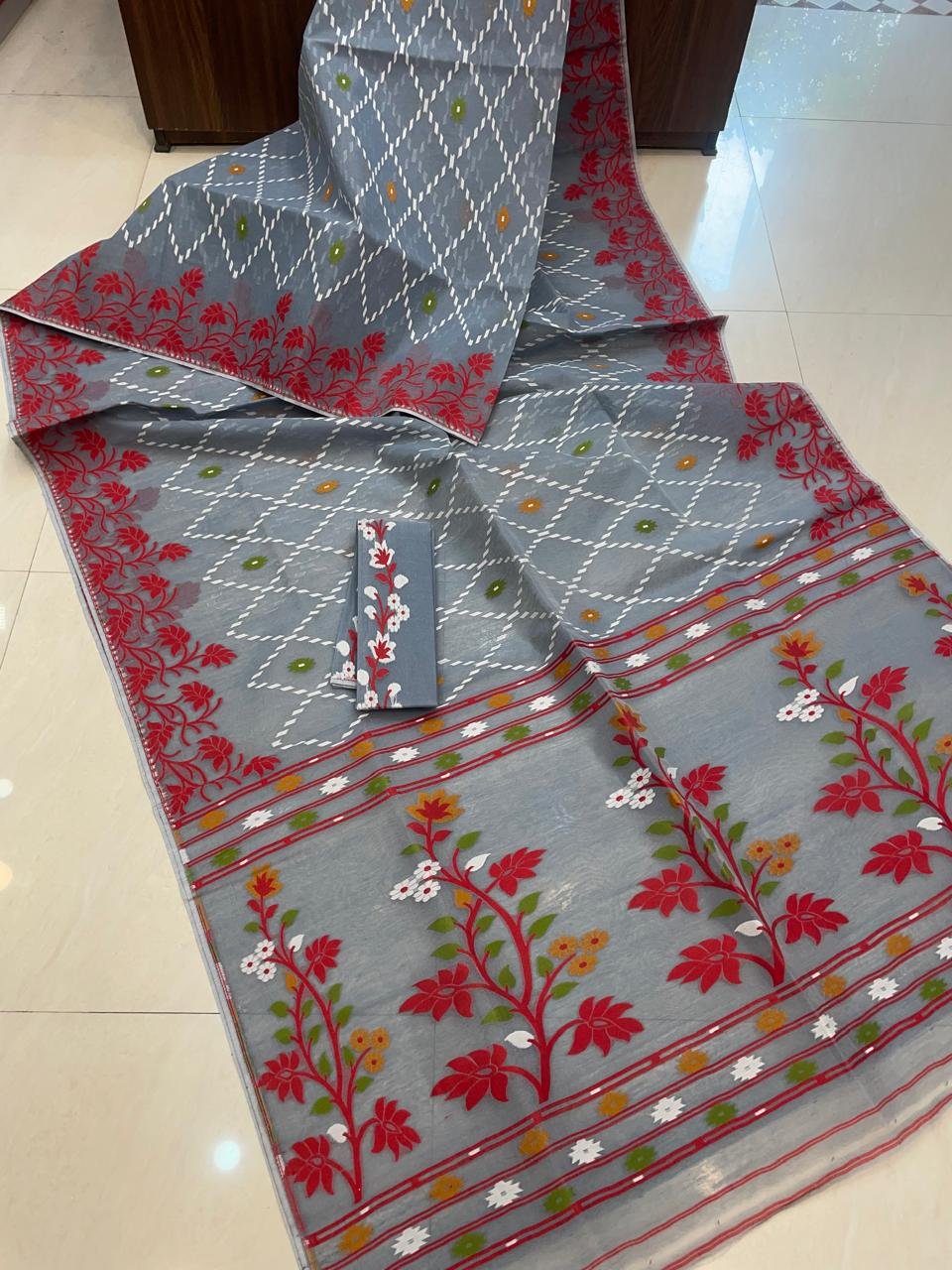 Grey Soft Crosslota Dhakai Jamdani Sari