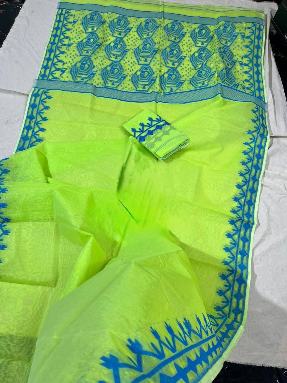 Light Olive Green Soft Dhakai Jamdani Saree