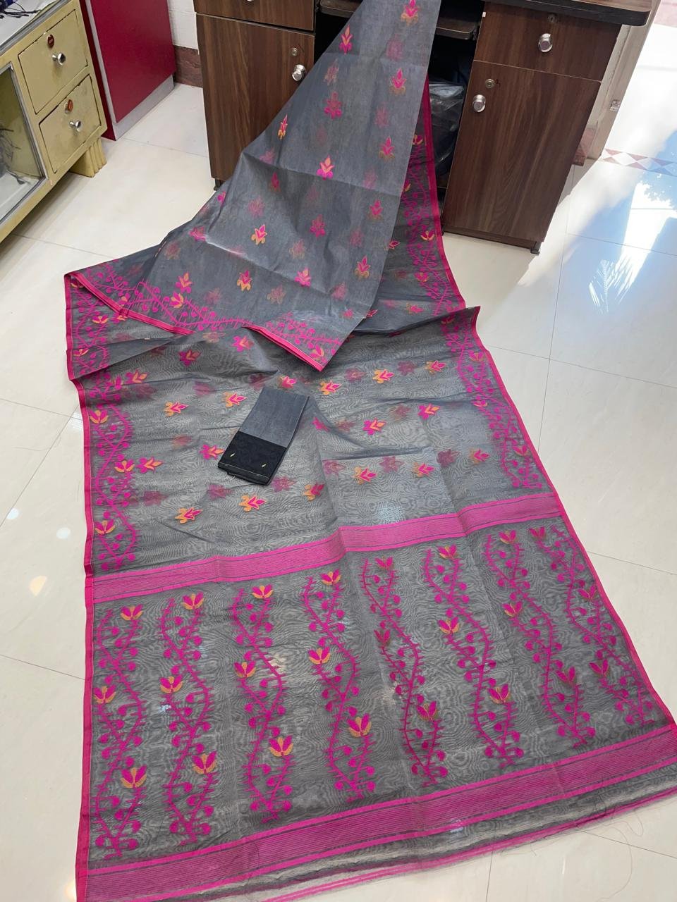 Be the first to review “Grey Soft Lota Dhakai Jamdani Sari” Cancel reply