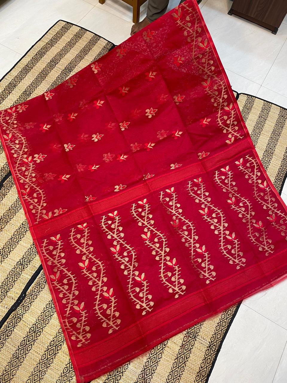 Be the first to review “Red Soft Lota Dhakai Jamdani Sari” Cancel reply