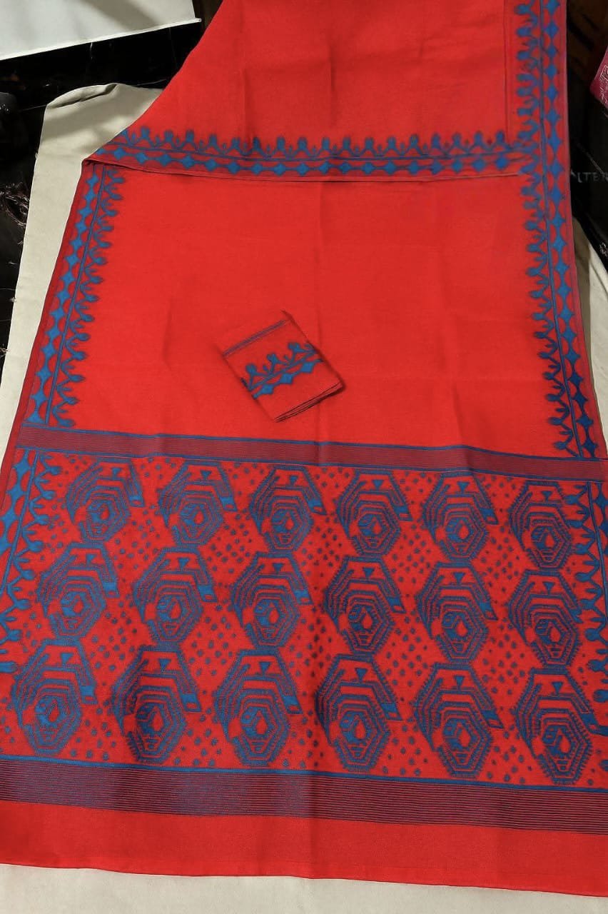 Red Soft Dhakai Jamdani Saree
