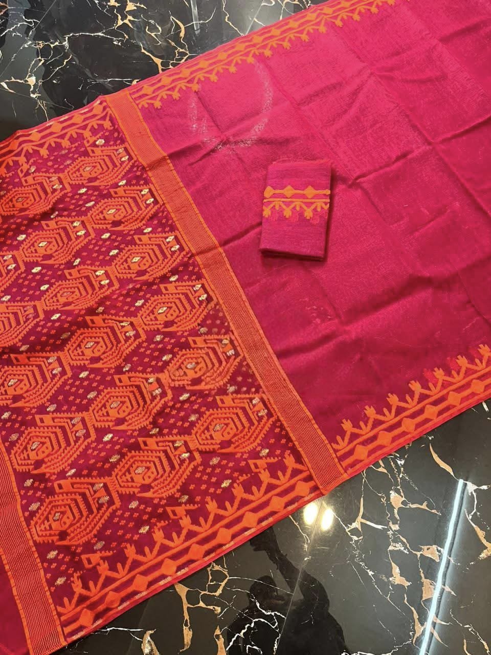 Persian Orange Soft Dhakai Jamdani Saree