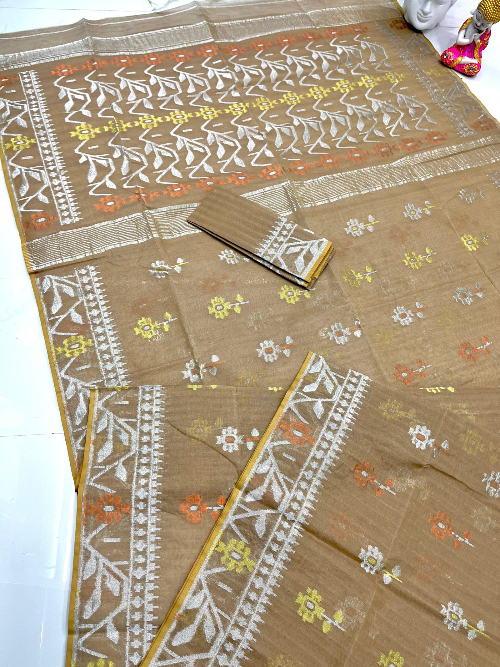 Deep Cream Soft Dhakai Jamdani Saree