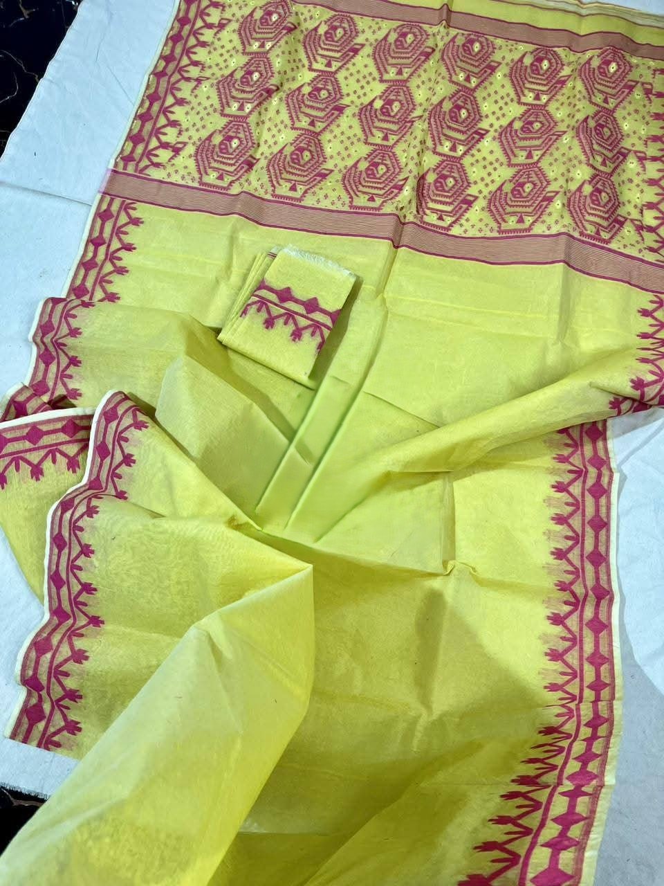 Yellow Soft Dhakai Jamdani Saree