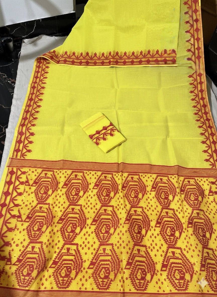 Yellow Soft Dhakai Jamdani Sari